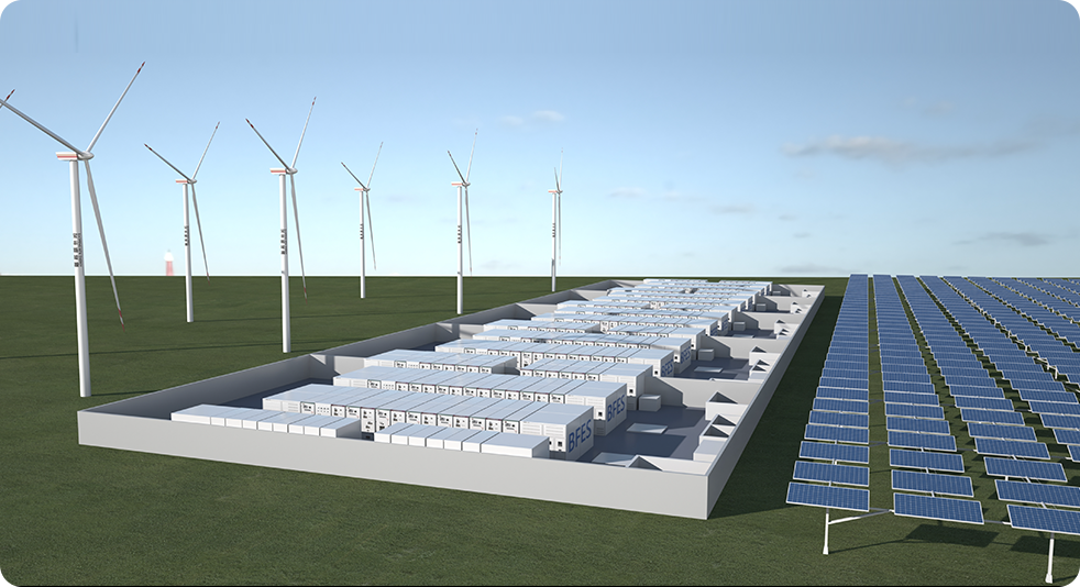 宝丰发电侧储能包括站房式储能系统和集装箱式储能系统两种,主要为风光电站配储,可有效促进清洁能源大规模、高比例消纳,提升绿电输送比例,为建设源网荷储一体化系统提供有力支撑。同时搭建电源侧虚拟电厂,为电网提供电能调节服务,最大化发挥储能价值的同时获取更大的收益。